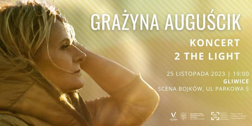 Zapraszamy do Gliwic na koncert, który towarzyszy wydaniu nowego, autorskiego albumu Grażyny Auguścik „2 The Light”. To płyta, która powstała w pandemii. Muzyka niesie nadzieję, spokój, miłość. Jest dążeniem do światła, dzięki któremu możemy pokonać największe mroczne chwile w naszej codzienności.