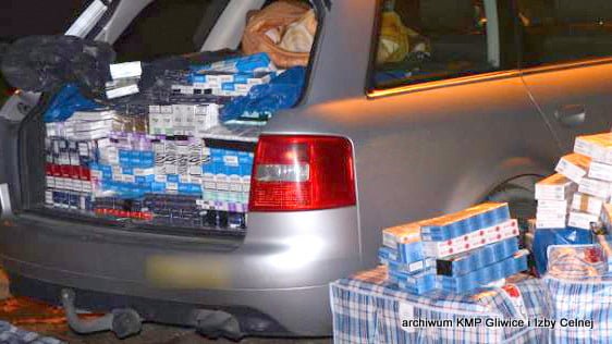 Policyjni wywiadowcy z gliwickiej komendy ruszyli za wyładowanym paczkami audi A4. Po zatrzymaniu 18-latka z Rybnika okazało się, że przewoził on 5 tysięcy paczek papierosów bez polskich znaków akcyzy skarbowej. Mężczyzna odpowie również za niezatrzymanie się do kontroli i stworzenie podczas ucieczki zagrożenia w ruchu drogowym.