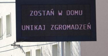 “Zostań w domu” na tablicach zmiennej treści. Wyświetlane jest też...