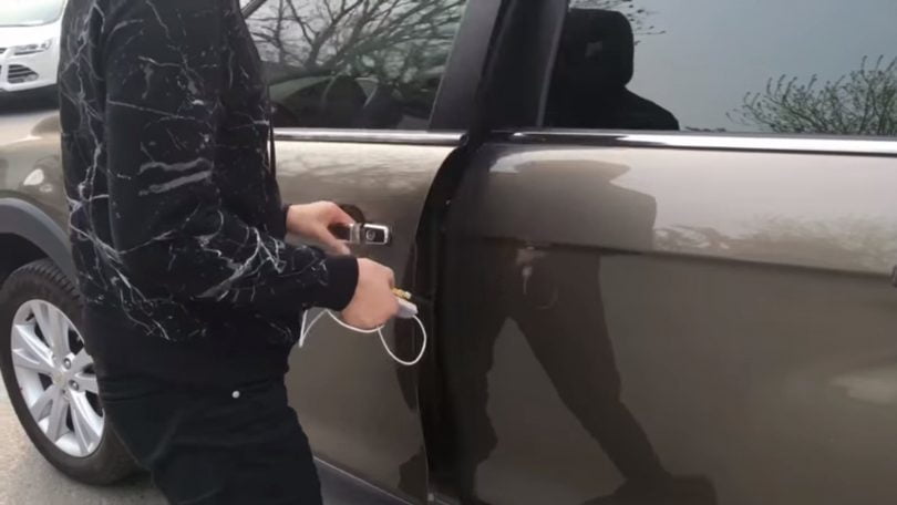 W momencie próby otwarcia drzwi, auto wysyła sygnał do kluczyka prosząc o podanie kodu dostępu. W normalnej sytuacji otrzymałby go od kluczyka właściciela, ale ten nie znajduje się akurat w pobliżu. Dzięki urządzeniu schowanemu w walizce sygnał zostaje wzmocniony. Drzwi do samochodu otwierają się, przestępcy odjeżdżają.