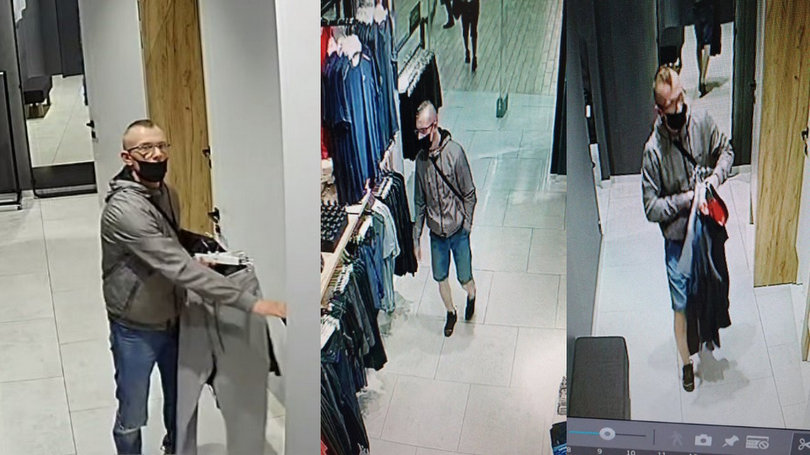 Widoczny na zdjęciach mężczyzna poszukiwany jest w związku z kradzieżami, do jakich doszło w centrum handlowym Forum. W dniach 2 i 4 czerwca nieznany sprawca zabrał w celu przywłaszczenia 3 kurtki softshell oraz 3 pary spodni dresowych o łącznej wartości ponad 1100 zł.