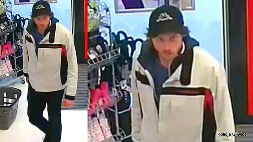 Widoczny na zdjęciu mężczyzna podejrzewany jest o kradzież w drogerii. Jego łupem padły produkty warte 660 zł. Szuka go policja i prosi o pomoc – może ktoś rozpozna, kogo uchwycił monitoring?