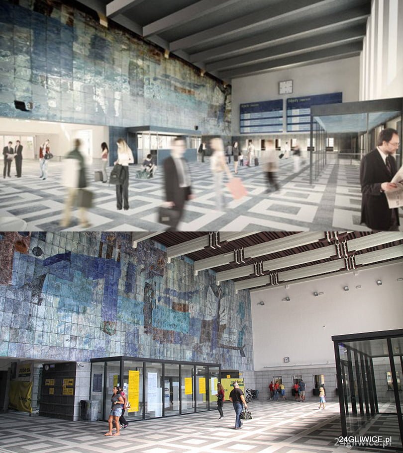 Na portalu 24gliwice.pl publikujemy grafiki z porównaniem wizualizacji ze stan obecnym. Na samym dworcu PKP S.A. po raz kolejny zmienia termin zakończenia inwestycji (tym razem z czerwca 2016 roku na czwarty kwartał 2016 roku).