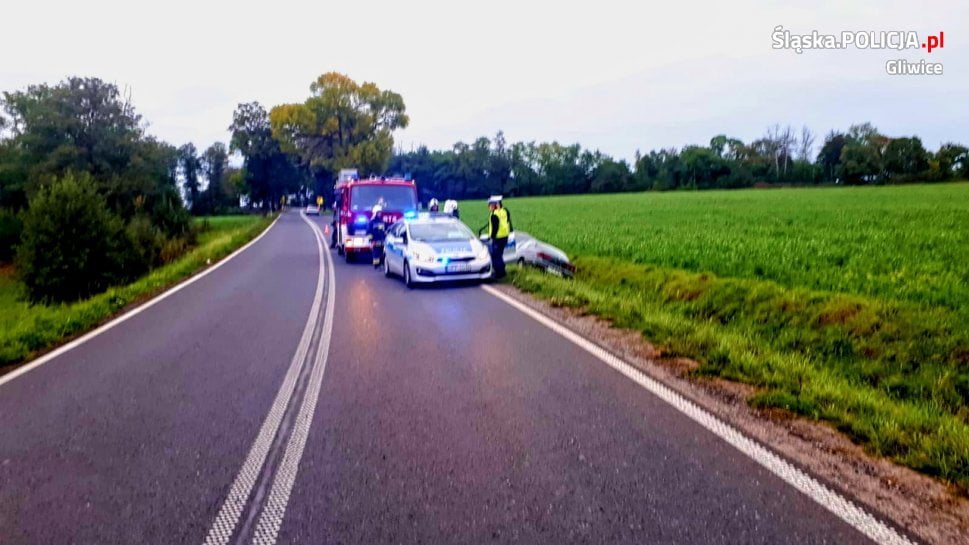 Samochód zjechał na przydrożny pas zieleni, po czym, po przejechaniu około 40 metrów, wytracił prędkość i zatrzymał się w rowie…