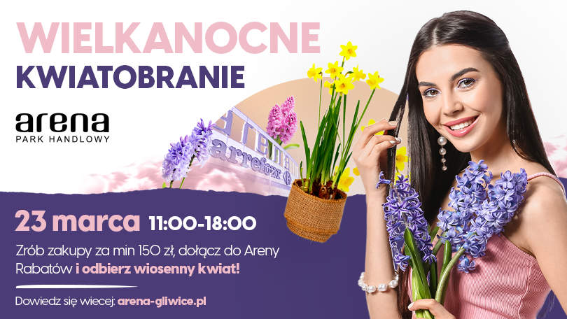 Jeśli zapachniało hiacyntami i żonkilami, to znaczy, że nadchodzi Wielkanoc. Warto jak najszybsze dokończyć listę zakupów i złożyć wizytę w Parku Handlowym Arena przez cały najbliższy weekend, ponieważ nadchodząca niedziela jest dniem handlowym! W sobotę – jako dodatek do udanych zakupów, Arena rozdaje te wiosenne kwiaty!