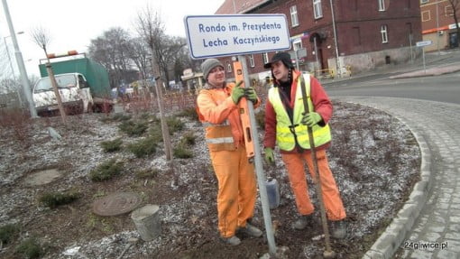 Punktualnie o godzinie 10.00 rano w piątek rozpoczęto montaż czterech tabliczek przy rondzie im. Prezydenta Lecha Kaczyńskiego.