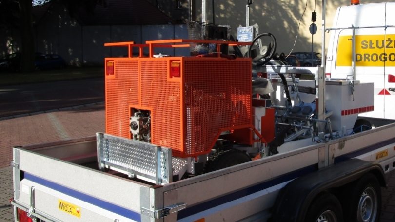 Nowa malowarka samojezdna z silnikiem spalinowym, warta niecałe 144 tys. zł, służy do odnawiania i malowania oznakowania poziomego na drogach powiatowych. Jej zakup spowodował potrzebę nabycia przyczepki do jej transportu – ta z kolei kosztowała prawie 14 tys. zł. Środki na ten sprzęt pochodziły z budżetu Powiatu Gliwickiego.