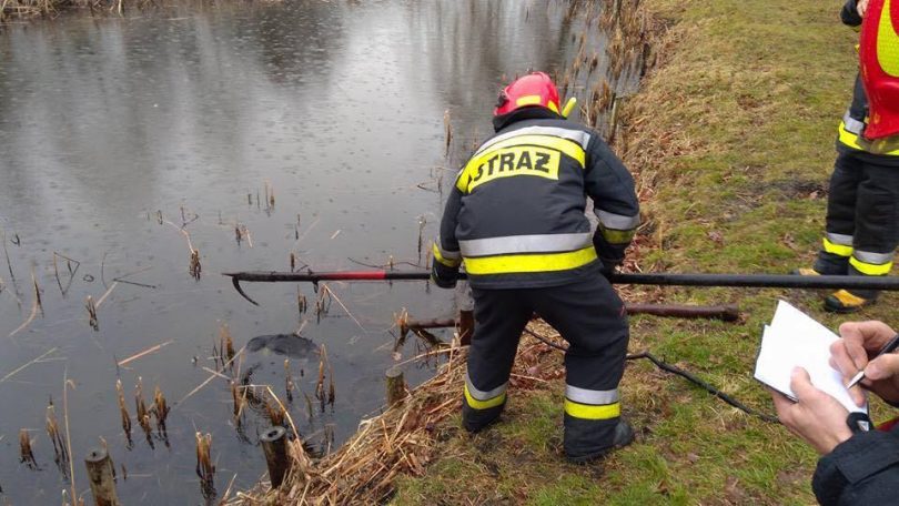 Na terenie ogródków działkowych ROD “Radość” w stawie znaleziono utopionego psa, który wcześniej prawdopodobnie został potrącony przez samochód. Zwierzę żyło w momencie wrzucania do wody.