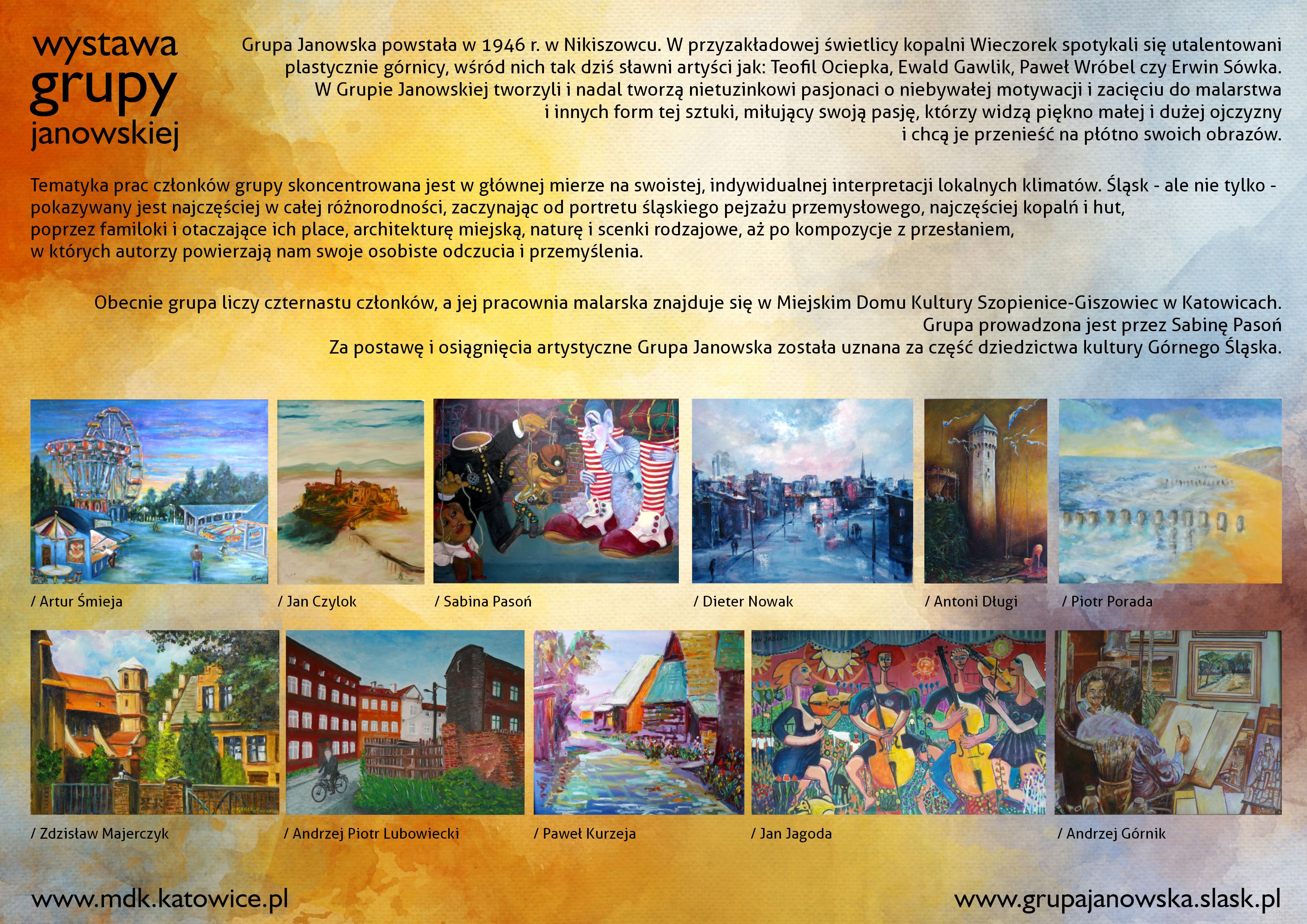 Grupa Janowska (oficjalna nazwa: Koło Malarzy Nieprofesjonalnych) została zawiązana w… kopalnianej świetlicy. To właśnie obecny Nikiszowiec (dawniej: Janów Śląski) jest tematem albo tłem wielu dzieł przedstawicieli Grupy Janowskiej. Magia miejsca udzielała się wielu twórcom, którzy w ciągu ponad 70 lat tworzyli tam swoje obrazy.