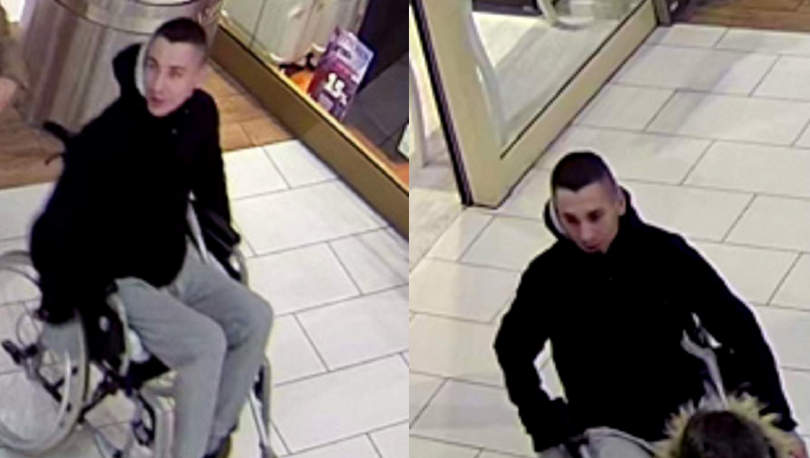 Poruszający się na wózku inwalidzkim młody człowiek, którego wizerunek uwieczniono na zdjęciach, jest poszukiwany w związku z kradzieżą zabawek w jednym z centrów handlowych w Gliwicach. Można pomóc śledczym w ustaleniu jego tożsamości.
