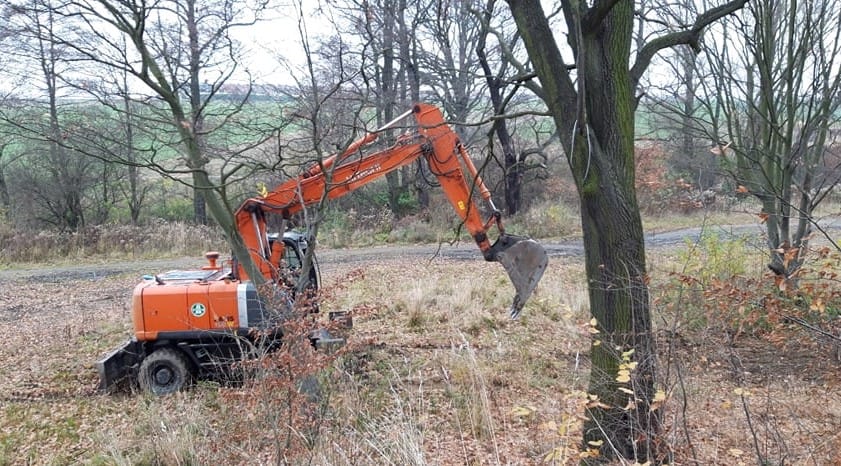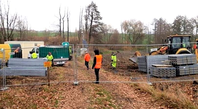 Koparki, pracownicy budowlani, ogrodzenie terenu – na Wilczych Dołach w poniedziałek ruszyła budowa zbiornika retencyjnego. Legalność podejmowanych działań kwestionują społecznicy zaangażowani w obronę tego terenu.