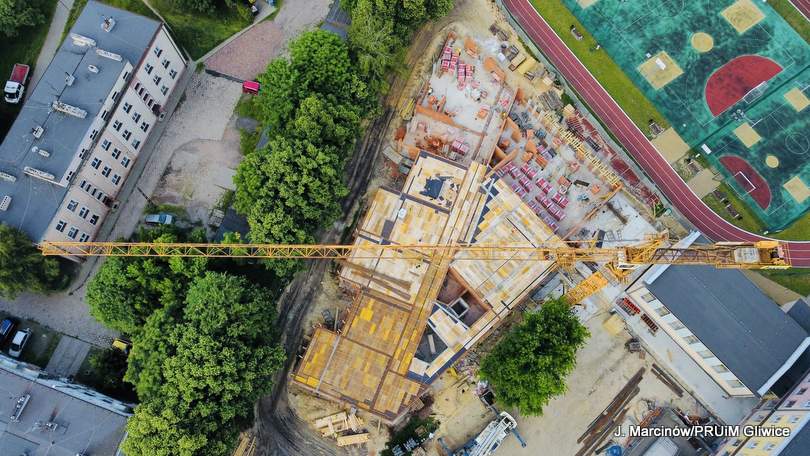 Równolegle do prac przy pierwszej kondygnacji trwają roboty ciesielsko-zbrojarskie związane z wykonaniem stropu nad parterem. Niebawem ruszy budowa kolejnego piętra. Zostały już zalane stropy i wieńce – informuje Przedsiębiorstwo Remontów Ulic i Mostów S.A., które realizuje inwestycję przy Ligonia wraz z firmą Mostostal Zabrze – Gliwickie Przedsiębiorstwo Budownictwa Przemysłowego S.A.