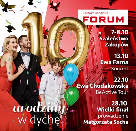 Październik jest miesiącem, w którym CH Forum obchodzi swoje 10-lecie. Zakończyła się również modernizacja obiektu. Zdecydowanie jest co świętować.