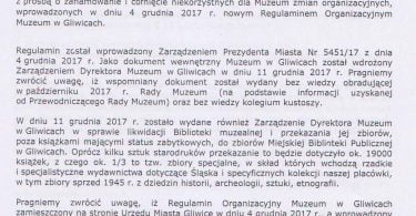 Być może ich pismo spotka się z większym zainteresowaniem Magistratu, niż próba interwencji w tej sprawie radnego Bartłomieja Kowalskiego (PiS), który skierował prośbę o wyjaśnienie sytuacji w Muzeum, po grudniowej publikacji portalu 24gliwice.