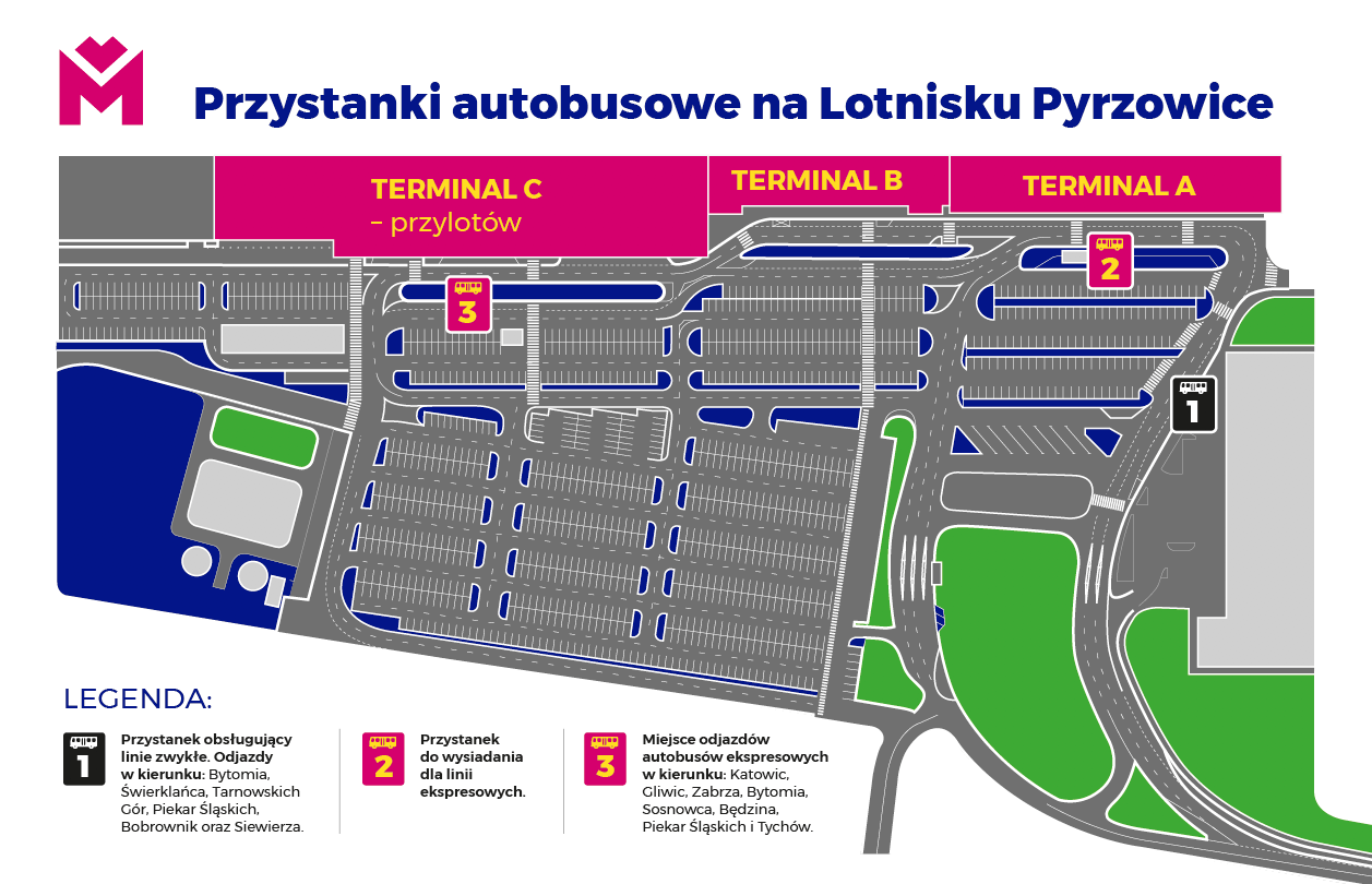 Osoby zmierzające na lotnisko będą wysiadać z autobusu bezpośrednio pod terminalem A. Z kolei autobusy jadące w drugą stronę, będą odjeżdżać ze stanowiska zlokalizowanego w bezpośrednim sąsiedztwie terminalu C.