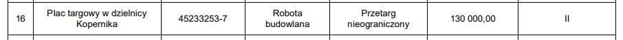 W “Planie przetargów na 2020 rok” MZUK zaplanował na wykonanie targowiska środki o wysokości 130 tys. złotych. Zgodnie z dokumentem, realizacja robót budowlanych powinna rozpocząć się w II kwartale, może się jednak opóźnić – na zaprojektowanie placu targowego zwycięzca konkursu ofert będzie miał 4 miesiące od momentu zawarcia umowy.