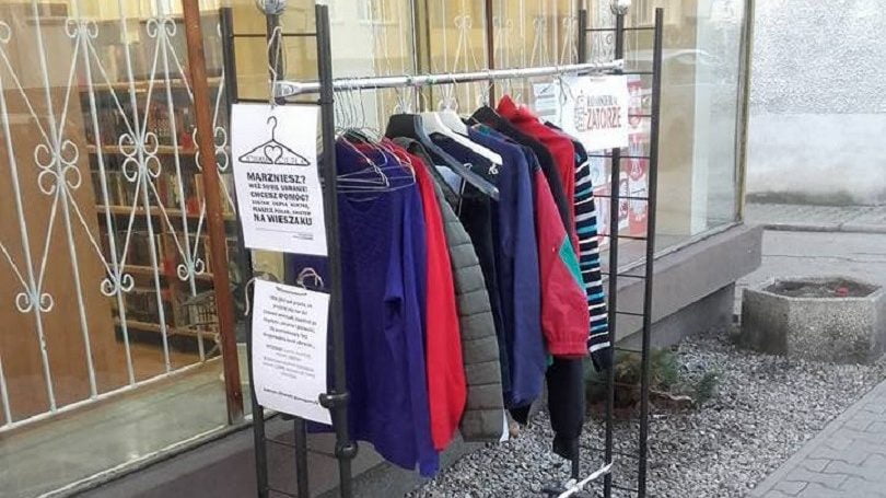 Na początku roku specjalnie oznaczony wieszak pojawił się w okolicy parkingu rowerowego przy Centrum Handlowym Forum. W tym roku organizatorzy tej akcji, Stowarzyszenie Przed Siebie, planują to powtórzyć. Być może tym razem uda się ustawić szafę na ubrania.