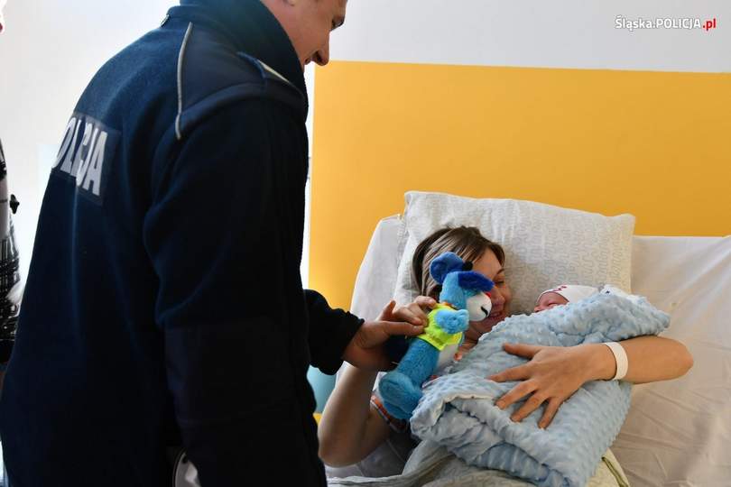 – Wśród nich był jeden z policjantów, który dzień wcześniej pomógł dotrzeć rodzinie z Czerwionki-Leszczyn do szpitala. Pani Kasia i Pan Janusz nie kryli swojej radości i podziękowali policjantom. Na pamiątkę mundurowi podarowali maluszkowi pluszowego Sznupka – maskotkę śląskiej Policji i życzyli świeżo upieczonym rodzicom zdrowia i wszedlkiej pomyślności – przekazuje dalej Śląska Policja.