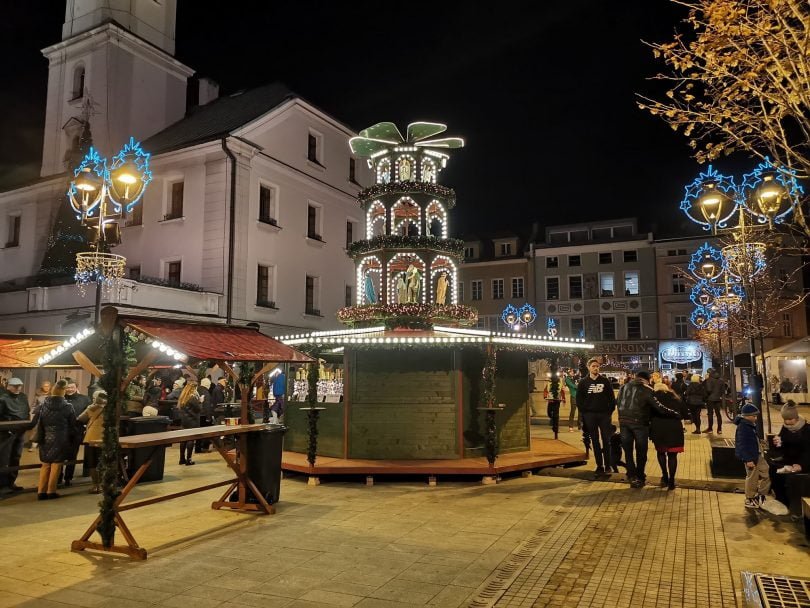 W tym samym czasie zamontowane zostaną także pozostałe ozdoby świąteczne – 10-metrowa choinka przy fontannie z trzema tańczącymi faunami, zdobna w 15 tys. światełek gigantyczna, 4,5 metrowa bombka na skwerze przy Urzędzie Miejskim, renifery przy ul. Dworcowej oraz las świetlnych drzewek na placu Krakowskim.
