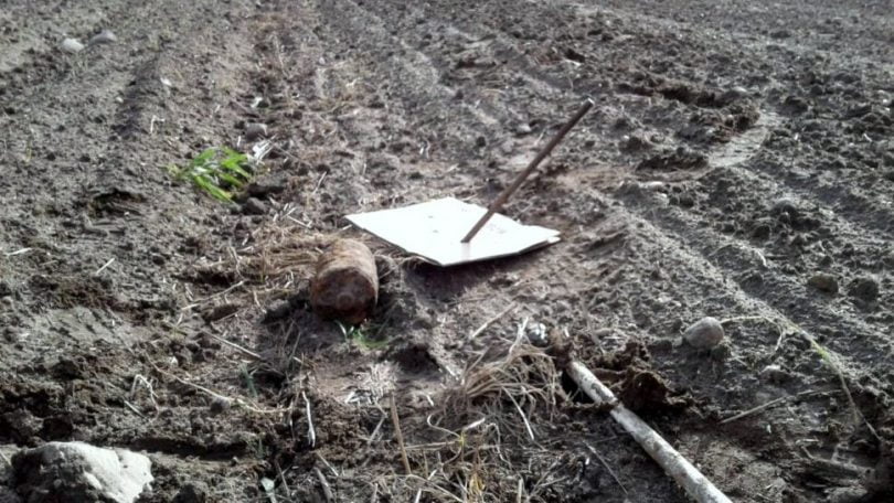 Przedmiot jest bardzo niebezpieczny. Funkcjonariusze przypominają, aby samodzielnie nie przenosić skorodowanych niewybuchów i niewypałów.