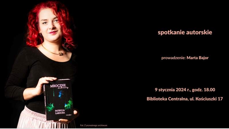 Spotkanie autorskie odbędzie się we wtorek, 9 stycznia, w Bibliotece Centralnej przy ulicy Kościuszki 17. Rozpoczęcie o godzinie 18:00. Prowadzenie – Marta Bajor.
