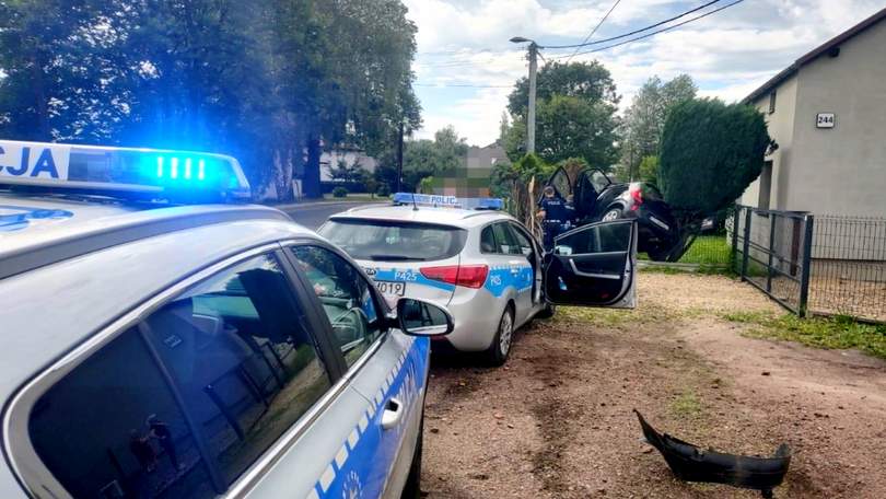 W pewnym momencie mężczyzna stracił panowanie nad pojazdem i wypadł z drogi i wjechał w ogrodzenie domu. Uciekinier usiłował jeszcze zbiec pieszo, ale po kilkunastu metrach został dogoniony i zatrzymany przez policjantów