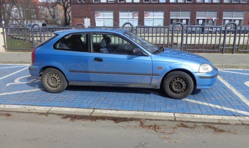 Kierowcy niebieskiej hondy zaparkowanej przy budynku magistratu przed karą nie uratował nawet kolor samochodu, idealnie pasujący do miejsca parkingowego. Mężczyzna nie był uprawniony do parkowania w tym miejscu, skończyło się wysokim mandatem.