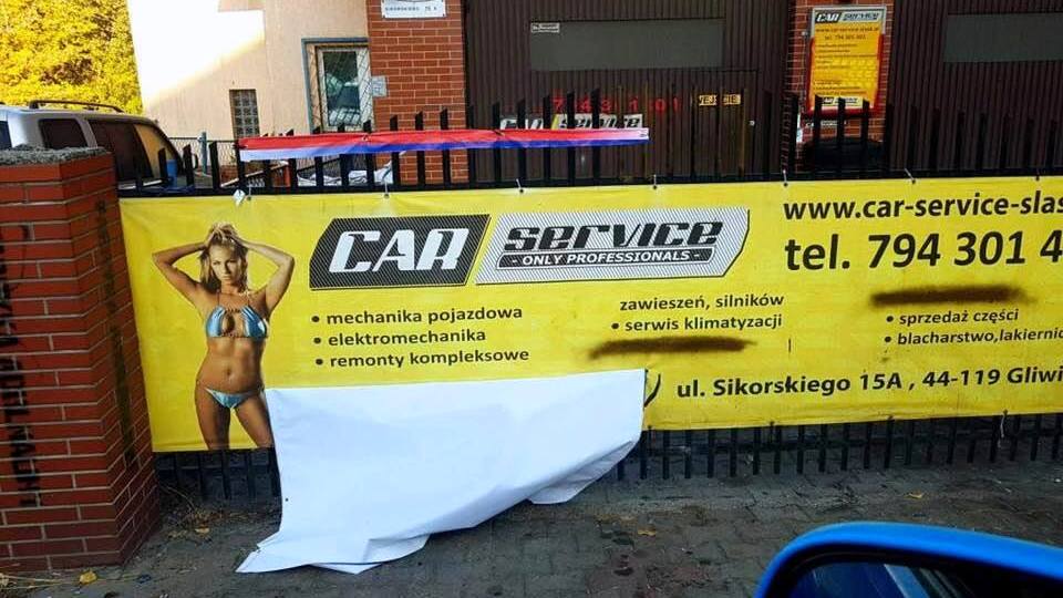 fot. KMP Gliwice, Czytelnik (zerwany banner w Sośnicy)