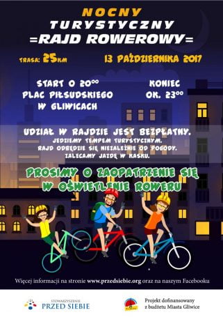 Gliwickie Stowarzyszenie Przed Siebie zaprasza na Nocny Turystyczny Rajd Rowerowy. Start z pl. Piłsudskiego w piątek, 13 października, o godz. 20:00.