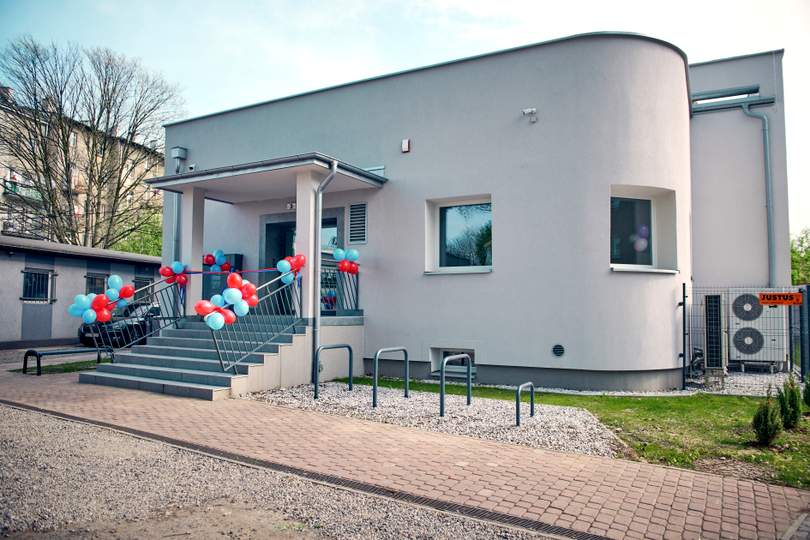 Nowa placówka mieści się w niezależnym budynku. Do głównego wejścia prowadzą schody oraz winda dostosowana do potrzeb osób z niepełnosprawnościami. W progu gości wita jasny, przestronny hall, prowadzący do poszczególnych pomieszczeń urządzonych w stonowanych kolorach. Każde z nich wyposażone jest w duże okna, które wpuszczają do wnętrz sporo światła. Jest sala do nauki z wygodnymi biurkami i krzesłami na kółkach; pomieszczenie do zajęć kreatywnych z podłużną wyspą, przy której dzieci będą mogły wspólnie wykonywać prace plastyczne; sala komputerowa z serwerownią; duży salon (z możliwością podzielenia go na dwa mniejsze pomieszczenia) przeznaczony do gier, zabaw czy oglądania filmów, a także przestronna jadalnia, do której wejść można m.in. przez nowoczesną kuchnię z wyposażeniem, w której dzieci będą odbywały warsztaty kulinarne. Oprócz tego nieruchomość została wyposażona w ogrzewanie podłogowe, pompę ciepła, fotowoltaikę, wentylację mechaniczną oraz klimatyzację.