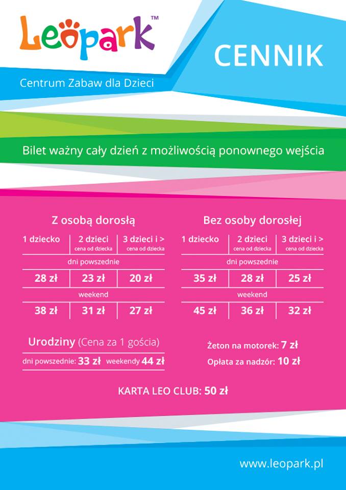 CH Forum, ul. Lipowa 1. Wstęp do Leoparku jest płatny – ceny za całodzienną wejściówkę zaczynają się od 20 zł w dni powszednie, 25 zł w weekendy. Najwięcej zapłacimy w weekend zostawiając jedno dziecko pod opieką animatorów (45 zł).