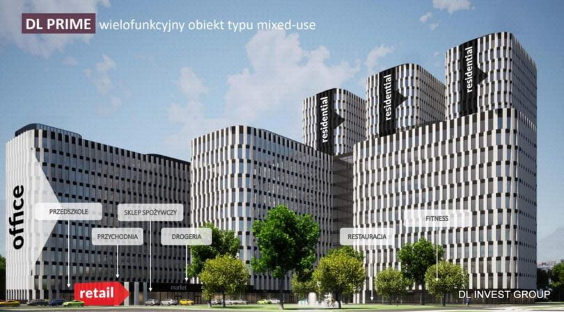 Spółka już około rok temu prezentowała grafiki prezentujące możliwe zagospodarowanie terenu po hucie “1 Maja” i niedoszłym Focus Parku. Jak informowano nas wówczas, stanowiły one jedynie projekt koncepcyjny potencjalnych przyszłych inwestycji. Znalazły się tam kolejne obiekty oznaczone jako DL PRIME II (planowana funkcja komercyjno-usługowa), DL PRIME III (biurowo-hotelowa) oraz DL PRIME IV (biurowo-usługowa).