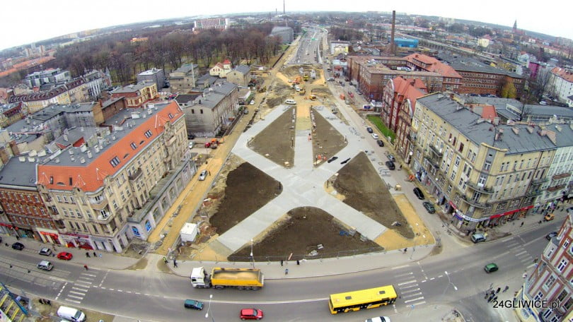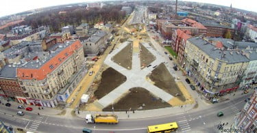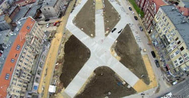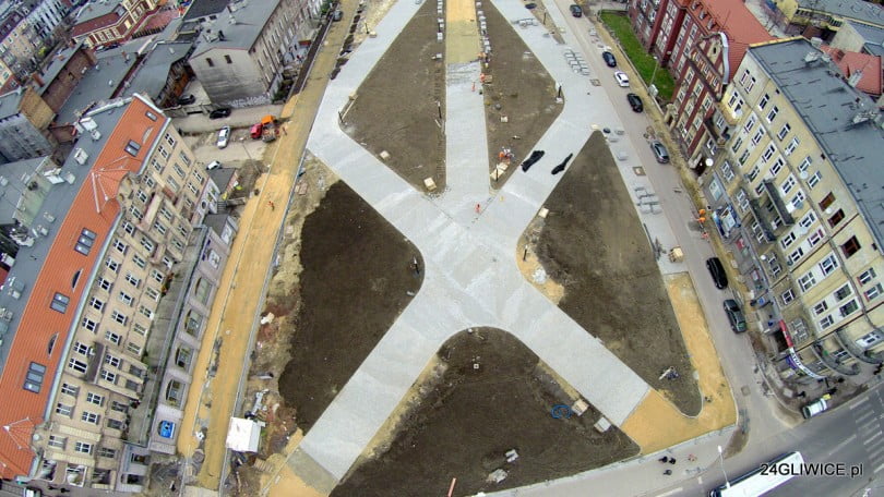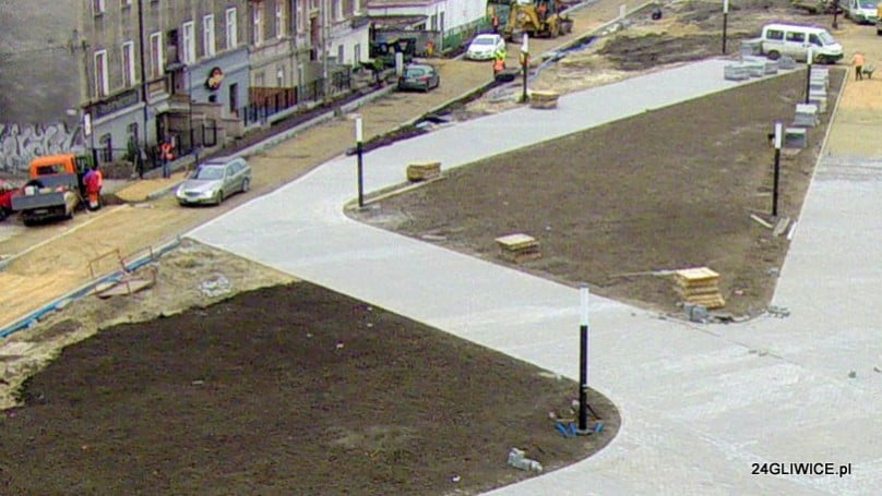 Widać już dość szerokie, wybrukowane kostką ścieżki. W widocznych na zdjęciach “trójkątach” nasadzona zostanie zieleń. Nie wiadomo jednak czy do zieleńca powinniśmy się przyzwyczajać. W miejscowym planie zagospodarowania przestrzennego możliwe jest tu stworzenie niskiej zabudowy.