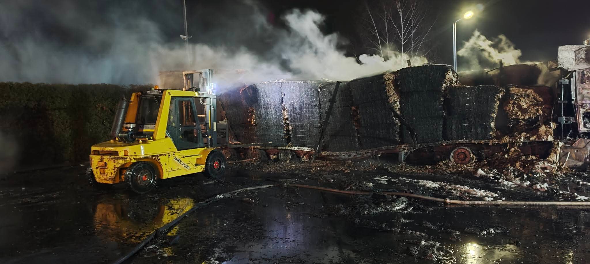 – Ze względu na utrudniony dostęp do materiału znajdującego się na naczepach, na miejsce zdarzenia zadysponowano Specjalistyczną Grupę Ratownictwa Technicznego z Komendy Miejskiej PSP w Dąbrowie Górniczej, której zadaniem było odciągnięcie uszkodzonych pojazdów. Przewożony ładunek stanowiły sprasowane kostki oraz bele makulatury, które po wykonaniu działań technicznych zostały rozładowane i dokładnie dogaszone – kontynuuje straż pożarna.
