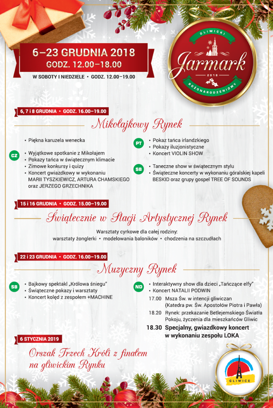 Przed nami finałowy, muzyczny weekend Gliwickiego Jarmarku Bożonarodzeniowego. W programie jest bajkowy spektakl, rewelacyjne koncerty i interaktywne widowisko. C
