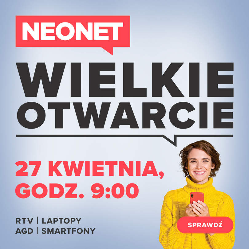 Wielkie otwarcie nowego salonu Neonet w Parku Handlowym Arena. Już od czwartku 27 kwietnia na klientów czekają setki modeli najróżniejszych urządzeń AGD, RTV, multimediów i akcesoriów! W dniu premiery Neonet przygotował mnóstwo atrakcji i promocji!