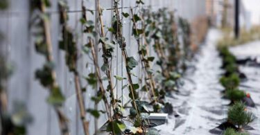 Ponad 400 sadzonek pnączy, zarówno zimozielonego bluszczu, jak i szkarłatnie przebarwiającego się jesienią winobluszczu, dostrzeżemy wzdłuż długiej ściany oporowej oddzielającej Centrum Przesiadkowe od kamieniczek z ul. Kolberga. Pnącza świetnie poradzą sobie w sąsiedztwie betonowych murów i drewnianych okładzin, są bowiem wyjątkowo żywotne i nie wymagają dodatkowej, kosztownej pielęgnacji. Dzięki intensywnemu wzrostowi szybko pokryją powierzchnię ściany, stając się naturalnym ekranem dźwiękochłonnym, filtrem powietrza i regulatorem temperatury otoczenia. Dodatkowo będą doskonałym, ekologicznym uzupełnieniem centralnego fragmentu muru, który wyłożono płytami betonowymi na bazie cementu fotokatalitycznego. Ten pod wpływem światła słonecznego oczyszcza powietrze, neutralizując szkodliwe substancje i zamieniając je w rozpuszczalne, spłukiwane przez deszcz sole o składzie przypominającym nawóz do kwiatów. Dodatkowo cement fotokatalityczny jest materiałem antybakteryjnym, dzięki czemu na płytach nie rozwiną się grzyby czy pleśń.