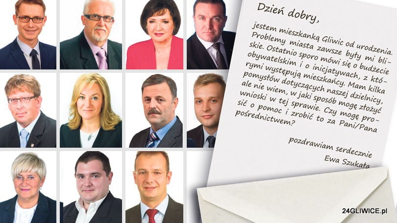 Radnym daliśmy 14 dni na odpowiedź. Jeszcze 1 września “pani Ewa” otrzymała cztery e-maile. Kolejno od Tomasza Tylutko (Prawo i Sprawiedliwość), Magdaleny Budny (Koalicja dla Gliwic Zygmunta Frankiewicza), Krystyny Sowy (KdGZF) i Zdzisława Goliszewskiego (PiS). W ciągu następnych kilku dni swoją pomoc zaoferowali też (w kolejności udzielanych odpowiedzi): Krzysztof Kleczka (KdGZF), Bartłomiej Kowalski (PiS), Urszula Więckowska (Platforma Obywatelska), Kajetan Gornig (PO), Bernard Fic (Sojusz Lewicy Demokratycznej), Jan Pająk (KdGZF) i Paweł Wróblewski (KdGZF). Wszyscy na zdjęciu głównym. Łącznie 11 z 21 radnych, którzy otrzymali wiadomość.