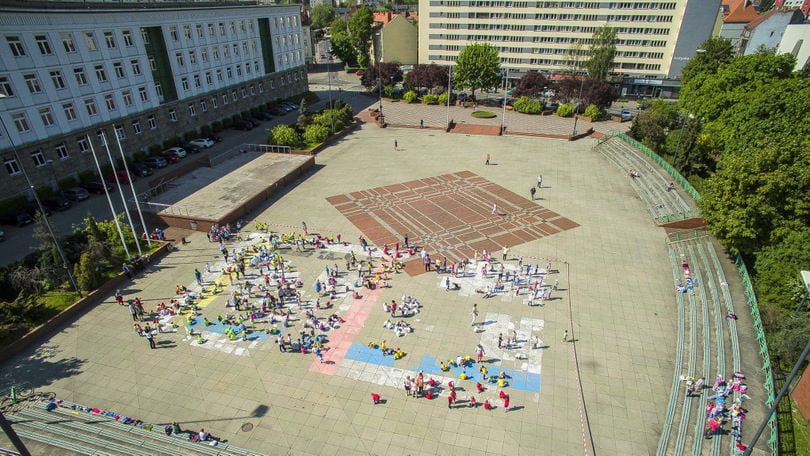 fot. www.facebook.com/mosquidron/, maj 2016r., akcja malowania płyty placu Krakowskiego przez przedszkolaków, zorganizowana z inijatywy Pozytywni.Gliwice.pl.
