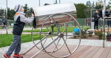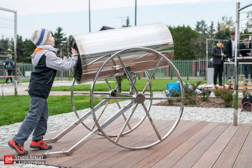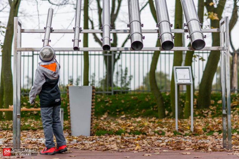 Dzięki tej inwestycji na terenie Radiostacji zwiedzający mają do dyspozycji całoroczną atrakcję sensoryczną. [perfectpullquote align=”full” cite=”” link=”” color=”” class=”” size=””]Mechaniczne i elektroniczne urządzenia ułatwiają zrozumienie zjawiska dźwięku oraz jego fizycznych właściwości. [/perfectpullquote]