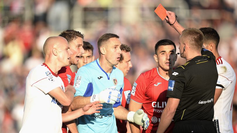Innym zawodnikiem, który w 2017 roku zobaczył czerwoną kartkę był Jakub Szmatuła. Bramkarz Niebiesko-Czerwonych nie dokończył meczu aż dwukrotnie. Po raz pierwszy musiał przedwcześnie zejść z murawy w derbowym meczu z Górnikiem Zabrze. Golkiper Piasta nie mógł pogodzić się z decyzją sędziego, który podyktował rzut karny po rzekomym faulu na Igorze Angulo. Za swoje protesty musiał pauzować przez cztery spotkania. Czerwoną kartkę Szmatuła otrzymał także w starciu z Legią Warszawa. 36-latek opuścił plac gry już w siódmej minucie po przewinieniu na Jarosławie Niezgodzie.
