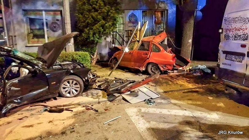 W czwartek tuż przed północą na ul. Szpitalnej w Knurowie doszło do poważnego wypadku drogowego. Kompletnie pijany młody knurowianin, kierujący bmw, wjechał w dwa zaparkowane auta.
