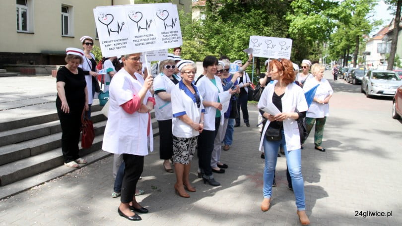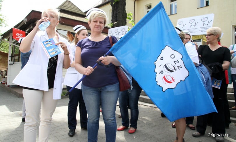 W dwugodzinnym proteście wzięły udział reprezentantki czterech gliwickich szpitali. Podobne pikiety zorganizowano dzisiaj także w innych miastach Polski.