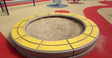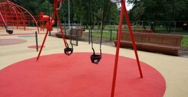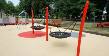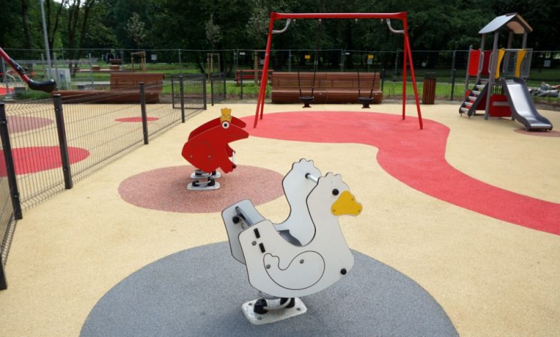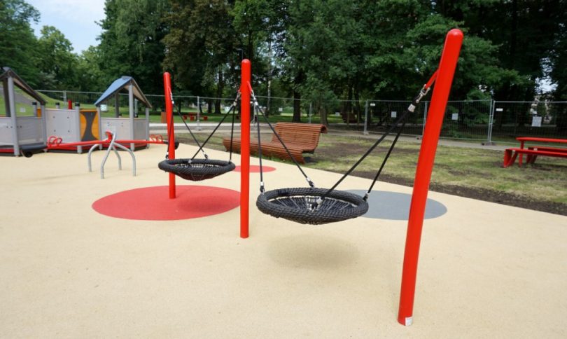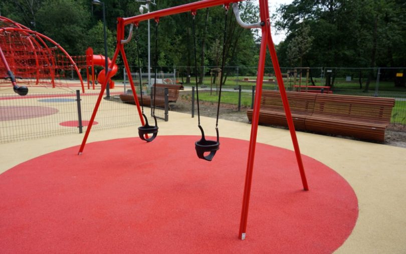 Ogromne linarium, karuzele, huśtawki, kiwaki, urządzenia wielofunkcyjne i integracyjne, zjeżdżalnie oraz piaskownica – wszystko ustawione na bezpiecznej nawierzchni, która z daleka przyciąga kolorami.