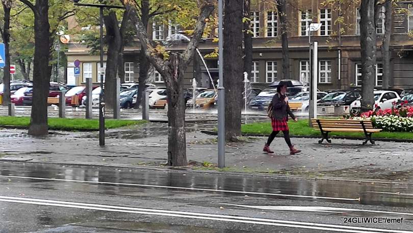 Trudno nie przyznać racji czytelniczce: wodotryski sens mają przecież wtedy, gdy korzystna jest aura. W dni ciepłe gliwiczanie chłodzą się w nich, siedzą na ławkach obok i odpoczywają. A gdy woda leje się i z nieba, i z fontanny albo gdy w tle przebiegają mieszkańcy pod parasolami, widok jest dość komiczny.