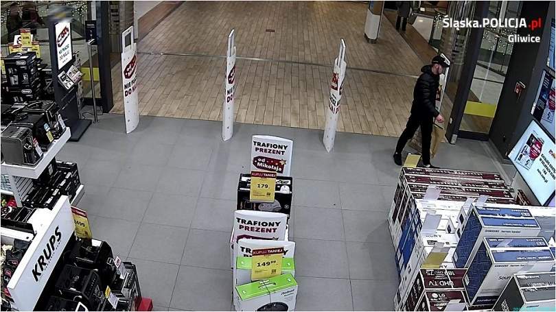 Na dzień przed Mikołajkami widoczny na zdjęciach mężczyzna przyszedł do sklepu w centrum handlowym Forum zaopatrzony w dużą papierową torbę. To do niej w pewnym momencie zapakował pudełko z konsolą (za którą nie zapłacił), co zarejestrował monitoring. Czy ktoś go kojarzy?