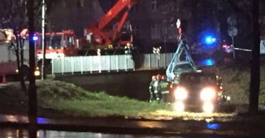 Na miejscu interweniowały trzy zastępy straży pożarnej, pogotowie i policja. By wyciągnąć pojazd z rzeczki strażacy wykorzystali specjalistyczny dźwig. Poszkodowani zostali odwiezieni do szpitala. Ich życiu nie zagraża niebezpieczeństwo. W tej chwili ustalane są dokładne przyczyny zdarzenia.