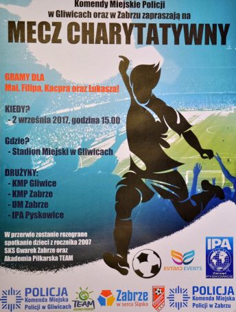 Policjanci zagrają dla nieuleczalnie chorych Mai, Filipa, Kacpra oraz Łukasza – dzieci funkcjonariuszy obu komend. Cały dochód zostanie przeznaczony na pomoc dzieciom.