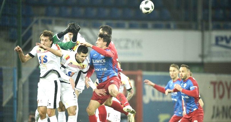 Lepiej w ten mecz weszli Niebiesko-Czerwoni, którzy kontrolowali sytuację na boisku. Podopieczni Waldemara Fornalika byli też bliżej wyjścia na prowadzenie, ale w 16. minucie Martin Konczkowski trafił w słupek.