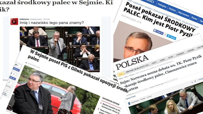 Sam gest Pyzika nie został zarejestrowany na nagraniu z obrad sejmu, ale uwieczniła go i opublikowała blogerka polityczna “Kataryna”, kojarzona z prawą stroną sceny politycznej. Zdarzenie szybko podchwyciły ogólnopolskie media i o sprawie zrobiło się głośno.
